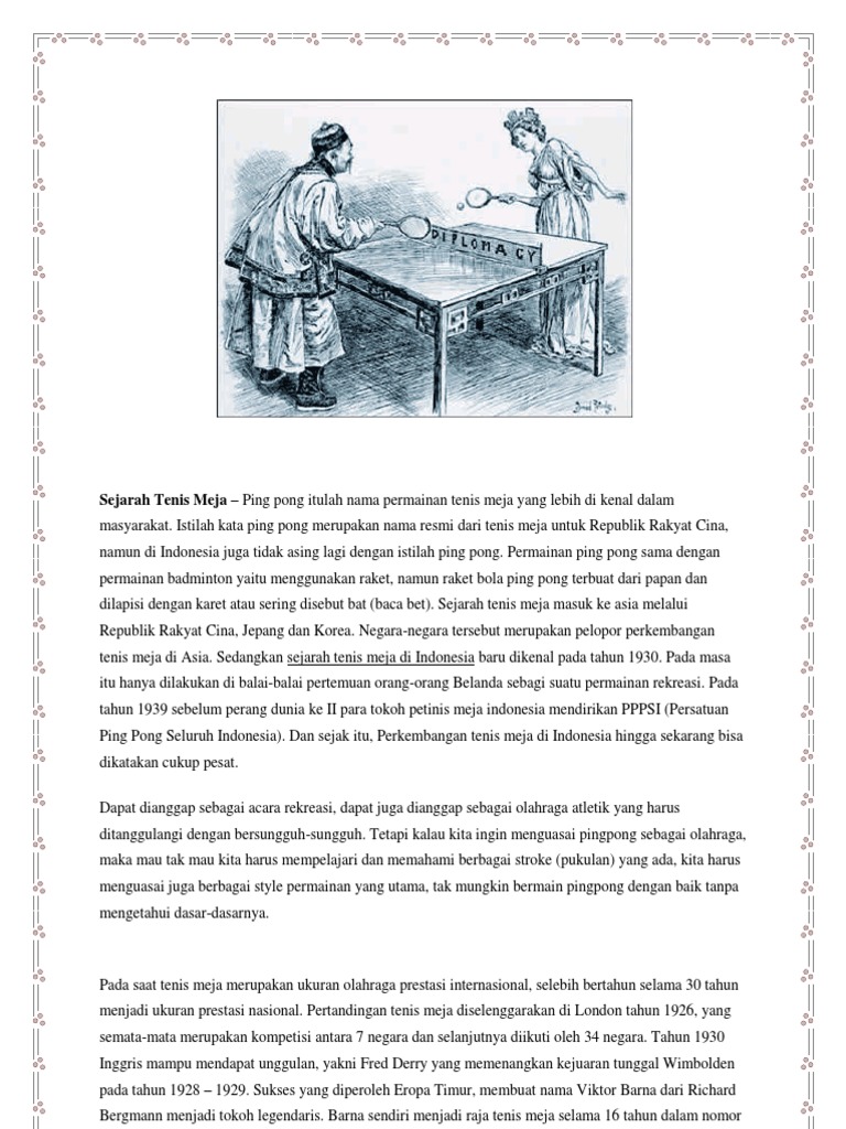 SEJARAH TENIS MEJA - TENIS MEJA INDONESIA