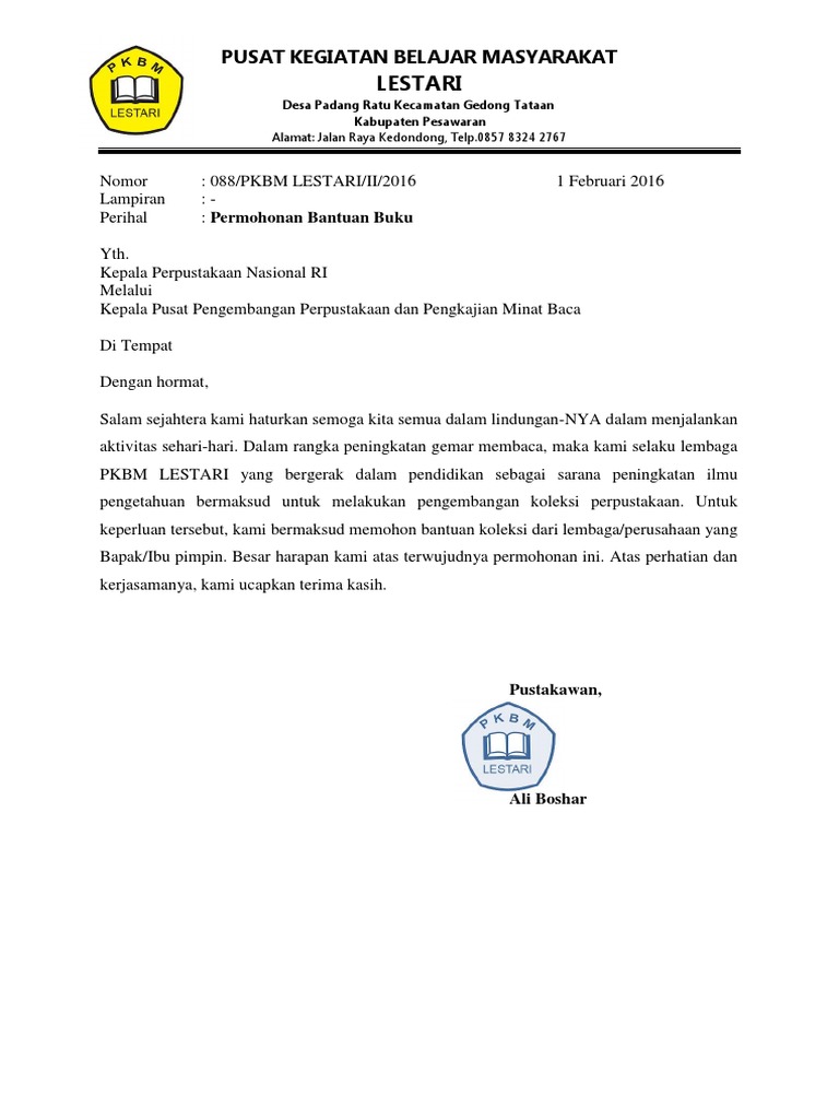 Contoh Surat Permohonan Bantuan Buku Perpustakaan Sekolah - Kumpulan Surat Penting