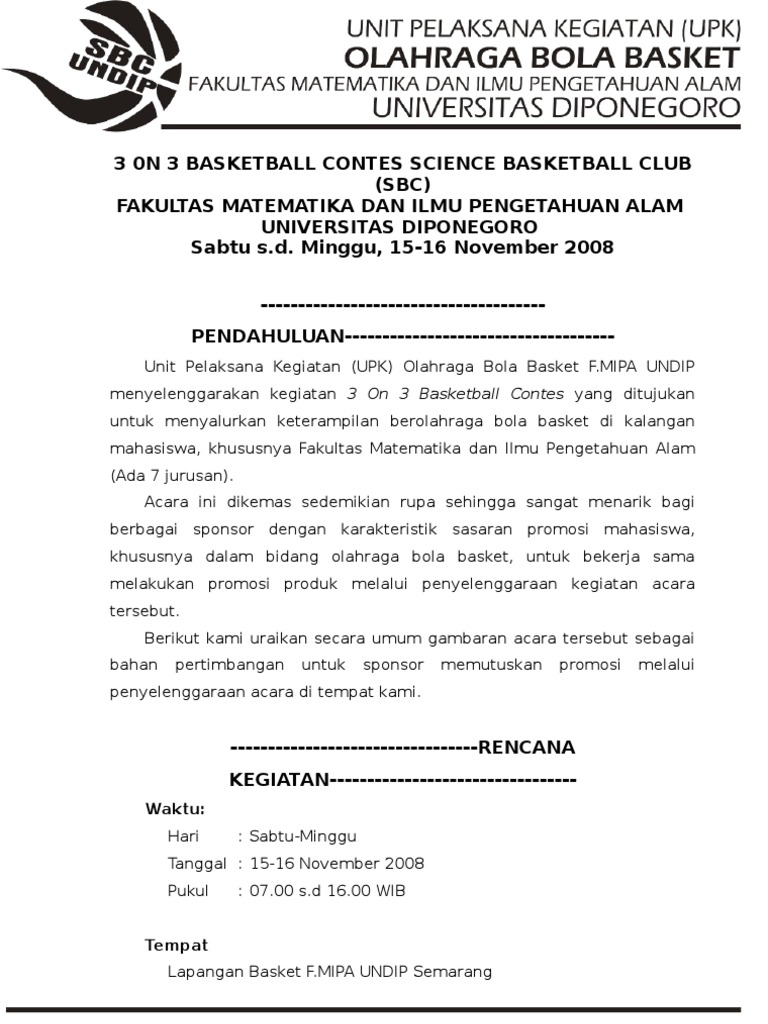 DOC) Proposal Mengenai Pertandingan Bola Basket Proposal Mengenai Pertandingan Bola Basket | asd asd - Academia.edu