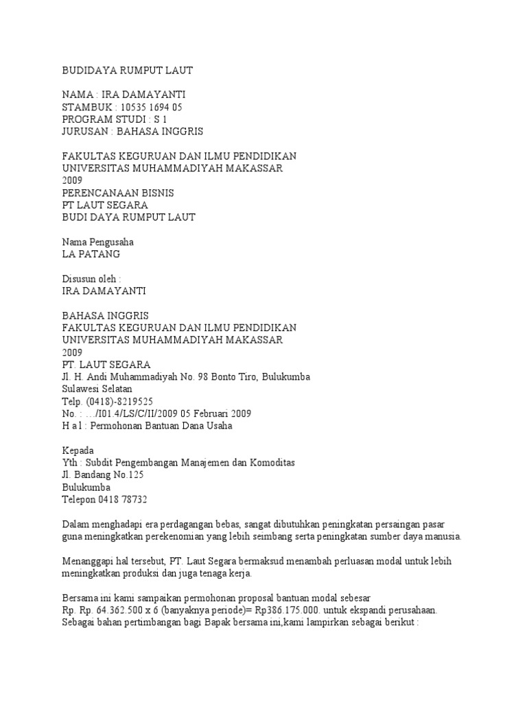 DOC) PROPOSAL KEWIRAUSAHAAN KERAGENAN RUMPUT LAUT | Novita tayuni - Academia.edu