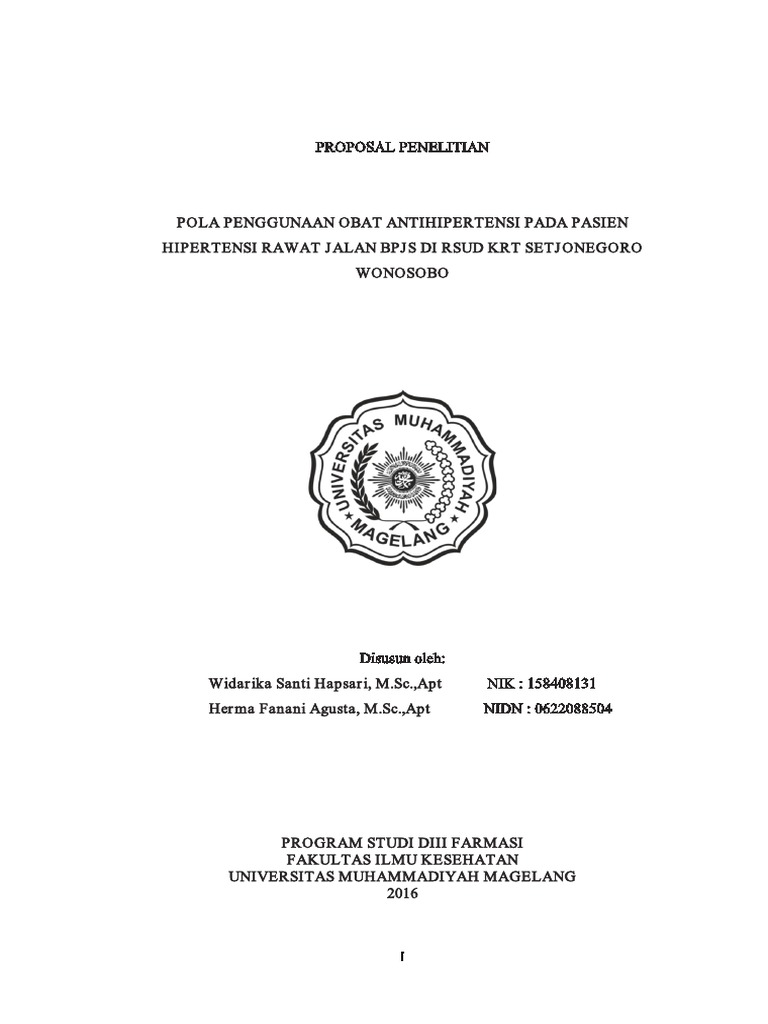PROPOSAL PENELITIAN POLA PENGGUNAAN OBAT ANTIHIPERTENSI PADA PASIEN HIPERTENSI RAWAT JALAN BPJS DI RSUD KRT SETJONEGORO WONOSOBO - PDF Free Download