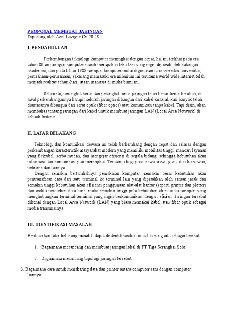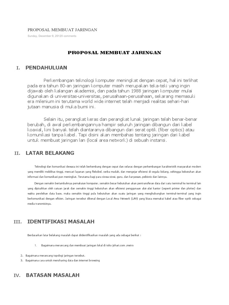 DOC) PROPOSAL PROYEK PENGADAAN JARINGAN KOMPUTER | Jamari Awi - Academia.edu