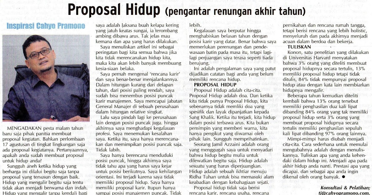 PROPOSAL HIDUP (pengantar renungan akhir tahun 1) ~ INSPIRASI