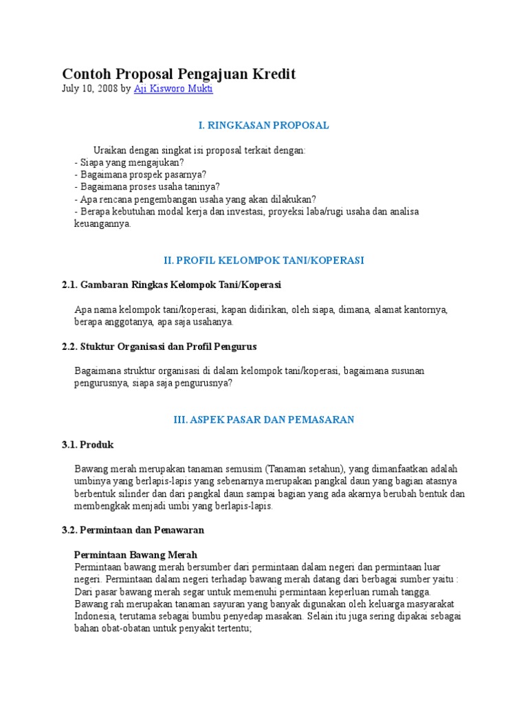DOC) Contoh Proposal Pengajuan Kredit Bank | agung setiawan - Academia.edu