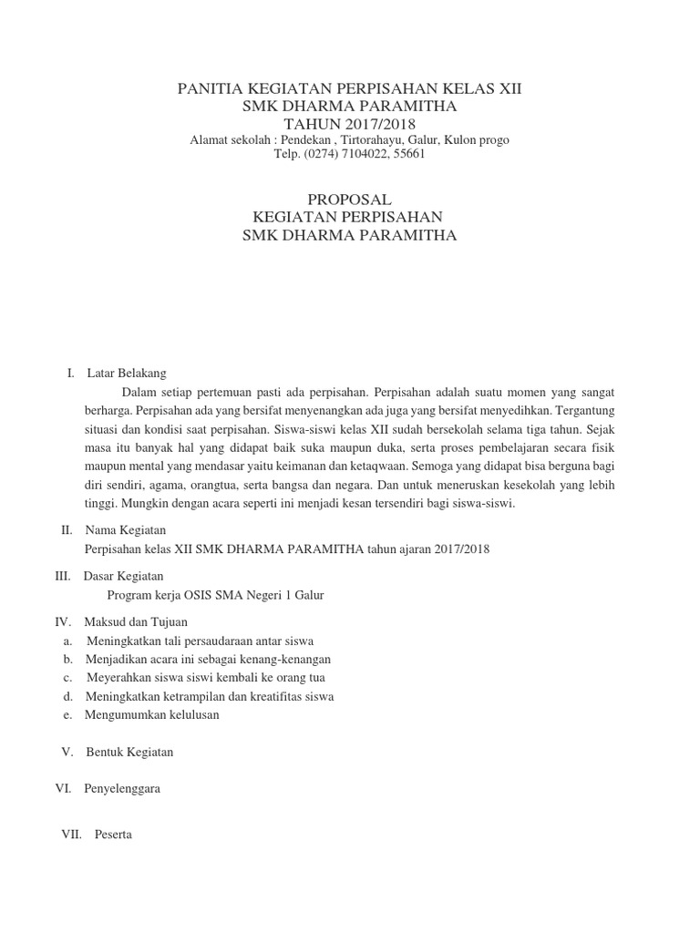 Proposal Kegiatan Perpisahan Kelas XII SMK Dharma Paramitha Dan Download File docx Nya - Kumpulan Proposal dan Surat Terlengkap