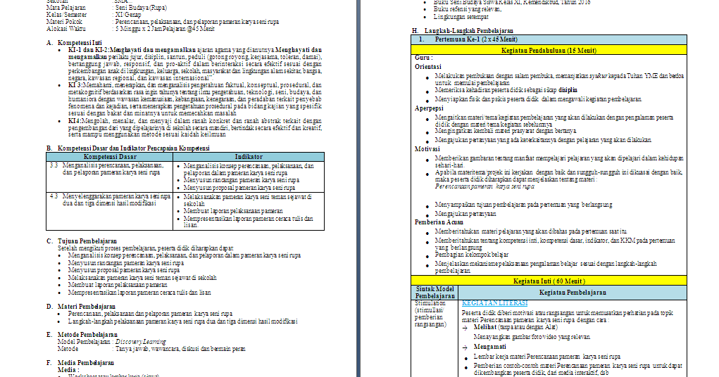 RPP 1 Lembar Seni Budaya (Seni Musik) Kelas 11 SMA/MA Semester 2 - antapedia.com