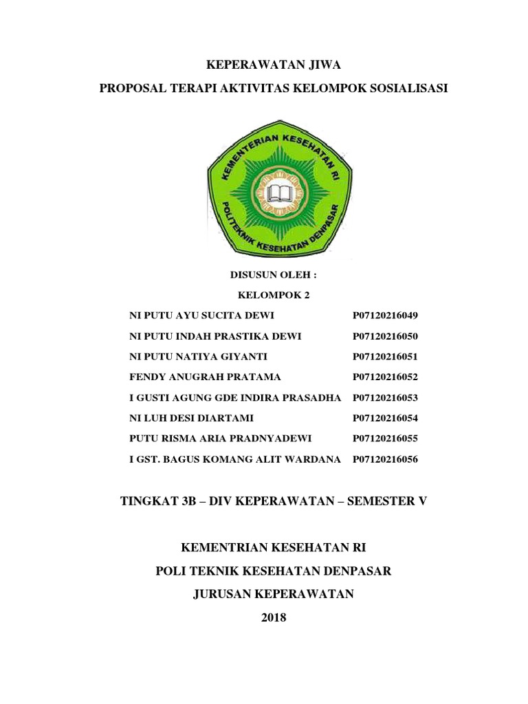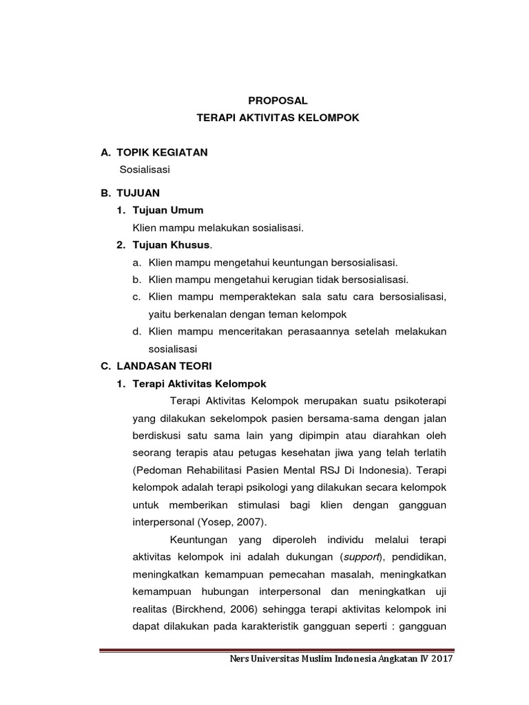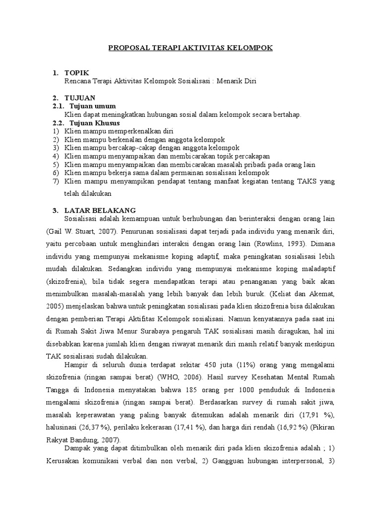 DOC) Proposal Terapi Aktivitas Kelompok Sosialisasi | Echi Inartiangat - Academia.edu