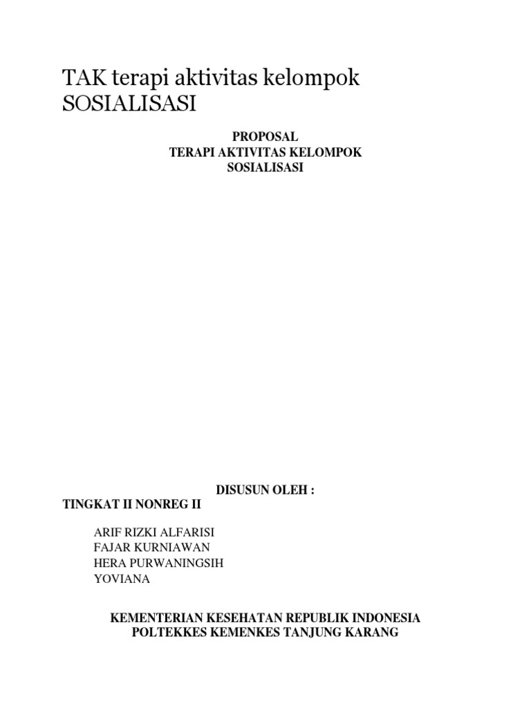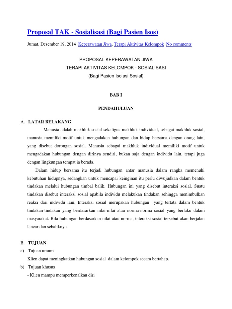 PROPOSAL TERAPI AKTIFITAS KELOMPOK (TAK) SOSIALISASI - PDF Download Gratis