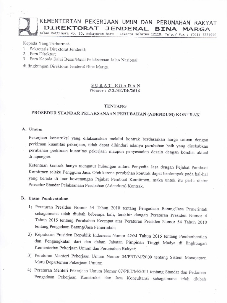 SE 02 2016 Prosedur Standar Pelaksanaan Perubahan (Adendum) Kontrak