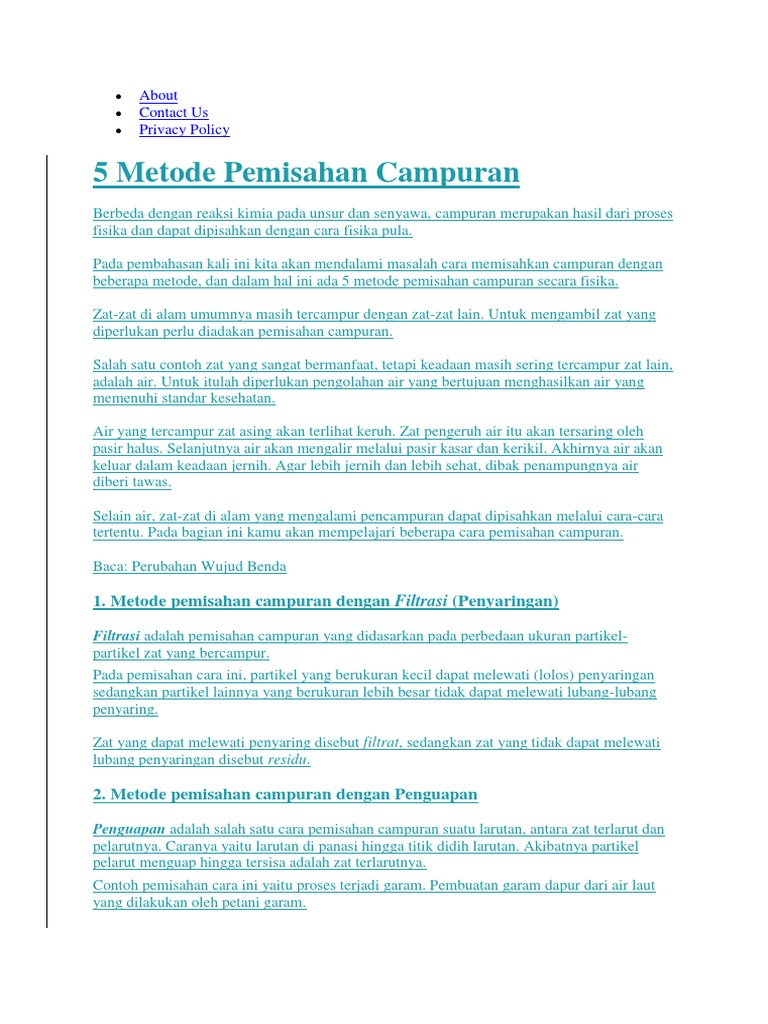 5 Metode Pemisahan Campuran: About Contact Us Privacy Policy