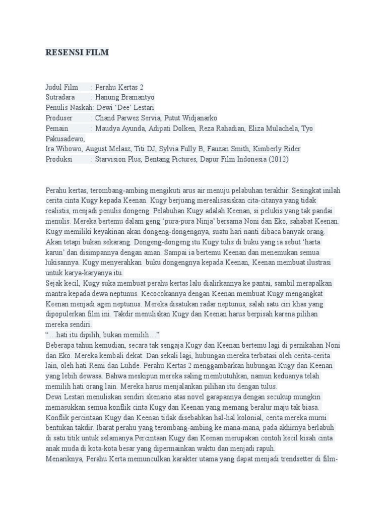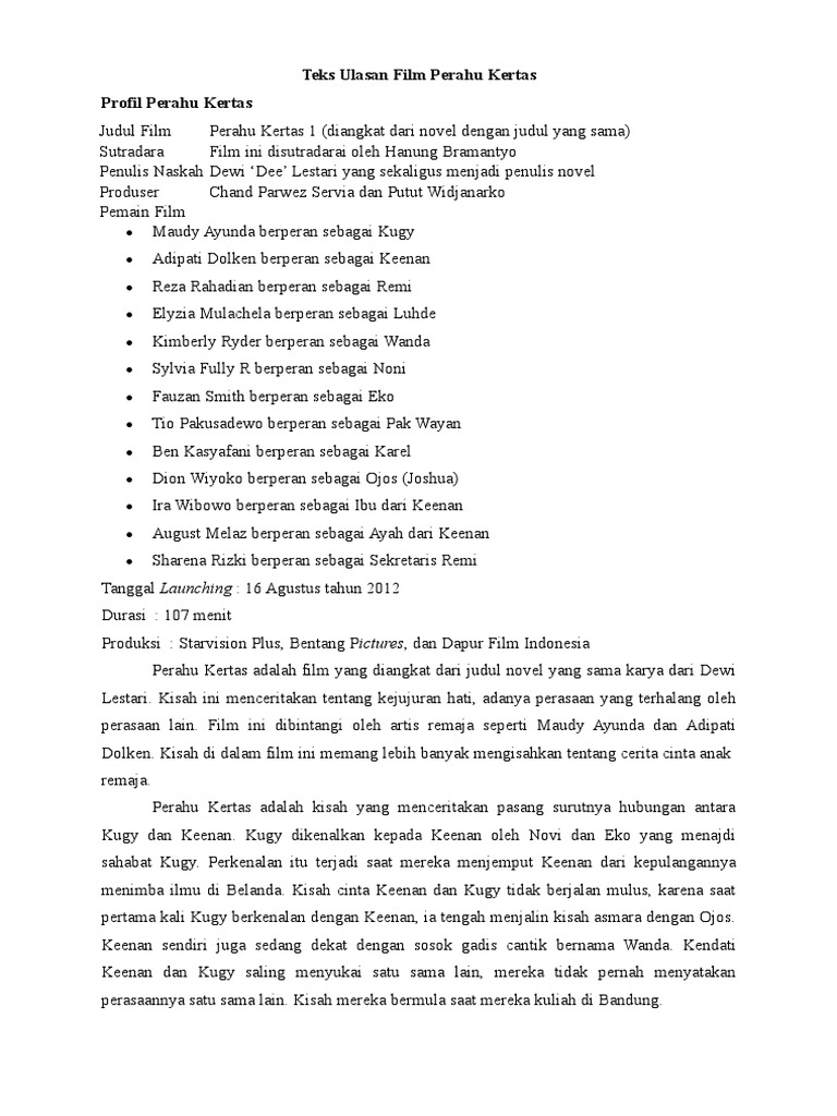 Contoh Teks Ulasan Film Perahu Kertas – gambar