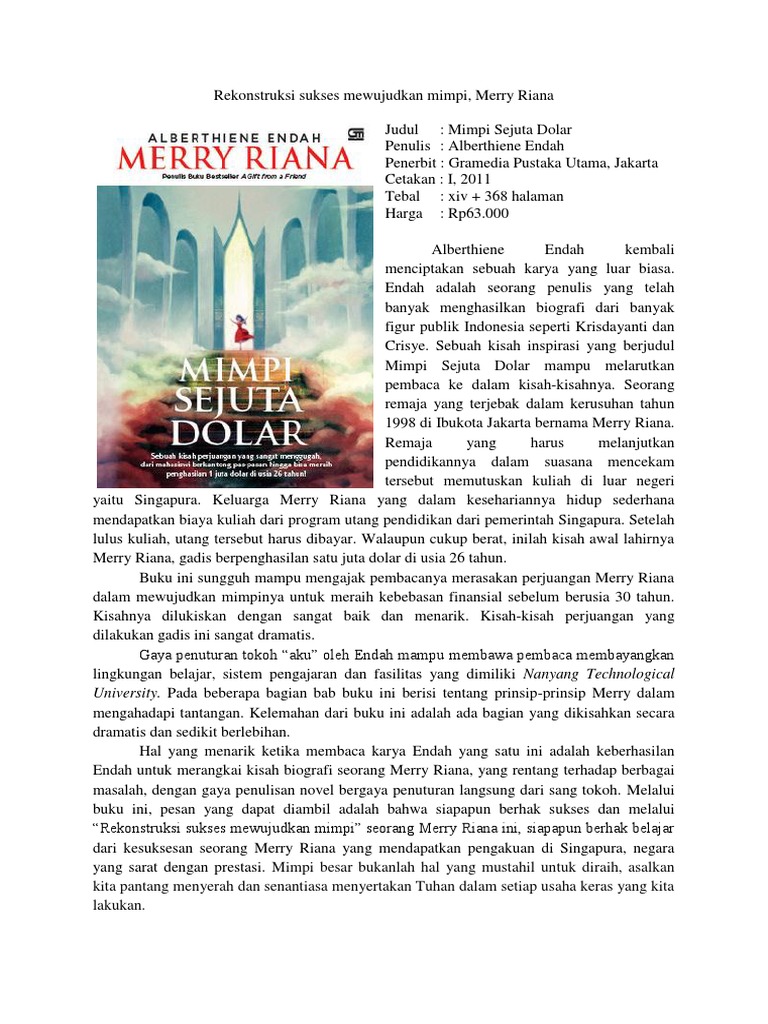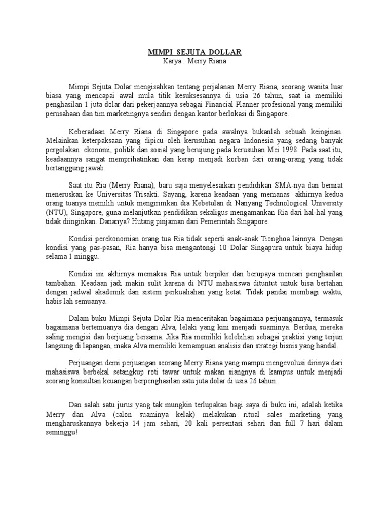 RESENSI BUKU MERRY RIANA-MIMPI SEJUTA DOLAR - YouTube