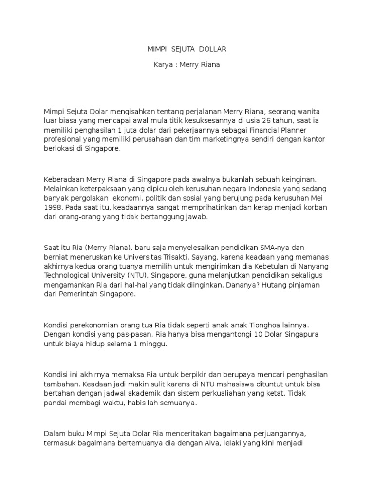 Resensi Novel “Mimpi Sejuta Dolar” karya:Merry Riana. Nina Triana Ningsih, ilmu pendidikan E - YouTube