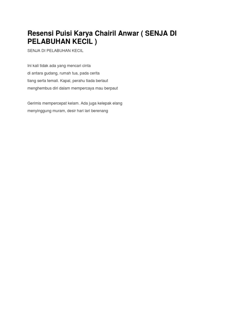 e P Sumber: Tempo, 25 Februari 2005 Bab 1.pdfmenulis resensi puisi. … Diskusikanlah dengan kelompok Anda komentar teman Anda tersebut. Kemudian, bacakan hasilnya di depan kelas. Seputar Sastra - [PDF Document]