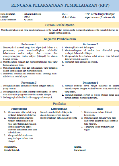 Contoh RPP Teks Cerita Pendek SMP Kelas