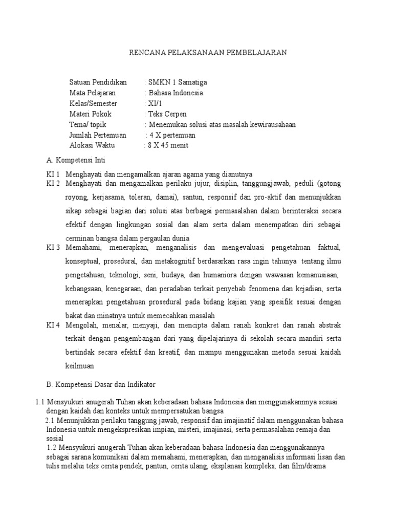 DOC) RPP BAHASA INDONESIA XI KURIKULUM 2013 CERPEN P1 | Dwi Kristianto - Academia.edu