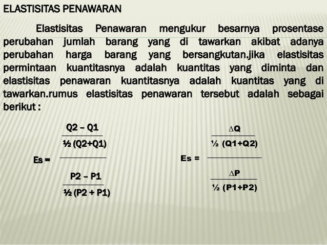 Rumus Elastisitas Permintaan Dan Penawaran Pada Setiap Perubahan Harga