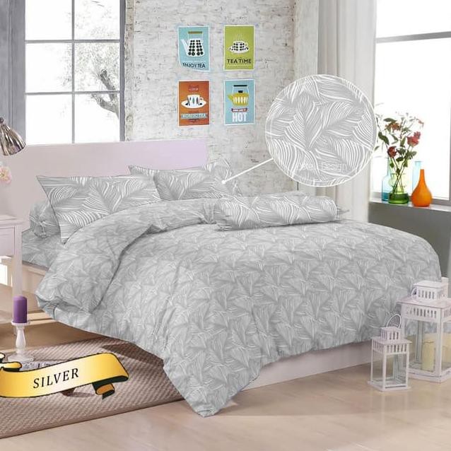 BEDCOVER MURAH 180x200 queen bed selimut kotak kotak daun putih abu | Shopee Indonesia