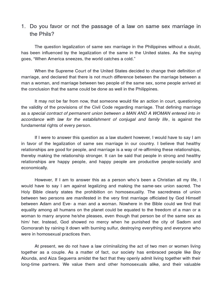 Why Same Sex Marriage Should Be Legal Essay - Should same-sex marriage be legalized? Argumentative essay
