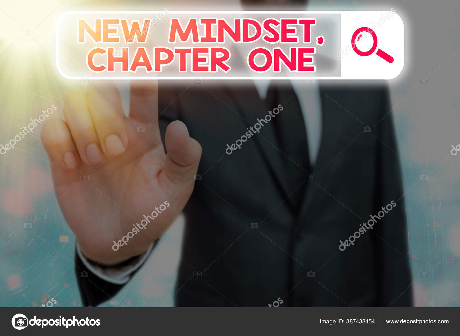 Tulisan tangan konseptual menunjukkan New Mindset, Bab Satu. Perubahan foto bisnis pada sikap dan pemikiran Peningkatan kerja keras Pencarian Web koneksi jaringan teknologi futuristik digital. — Stok Foto © artursz #387438454