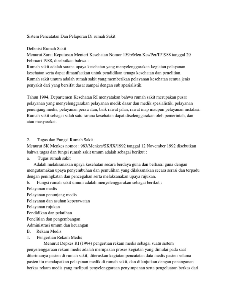 Sistem Pencatatan Dan Pelaporan Di Rumah Sakit