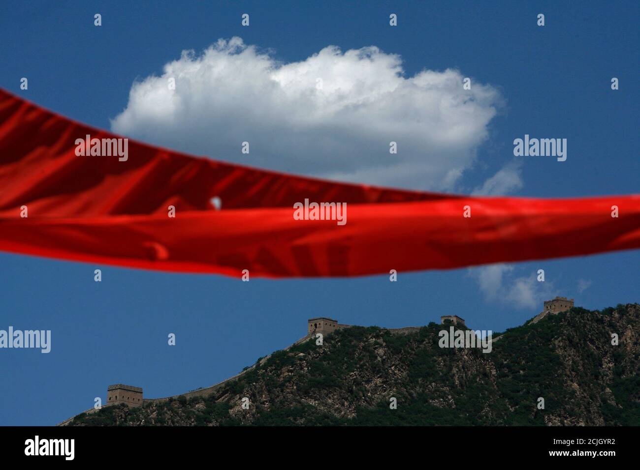 A banner of a slogan on redevelopment is hung in front of the Simatai section of