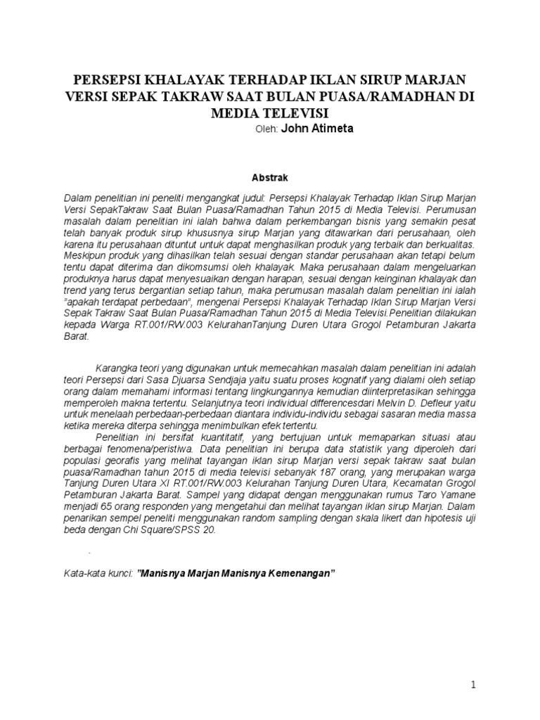 persepsi khalayak terhadap iklan sirup marjan versi sepak