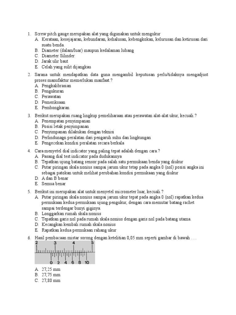 Soal Alat Ukur Mekanik Presisi TPM X - PDF Free Download