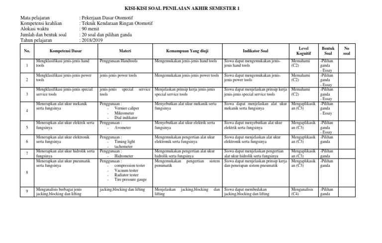 Contoh Soal Pekerjaan Dasar Teknik Otomotif Kelas 10 Semester 2 …