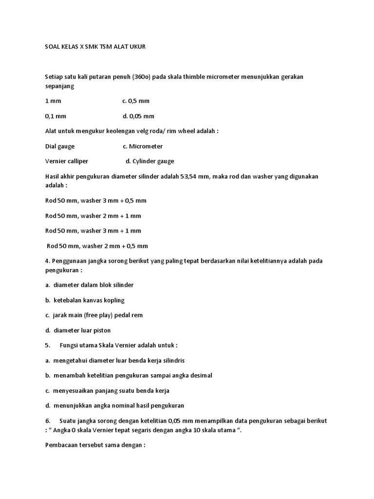 Soal Smk Alat Ukur Tsm - Guru Ilmu Sosial
