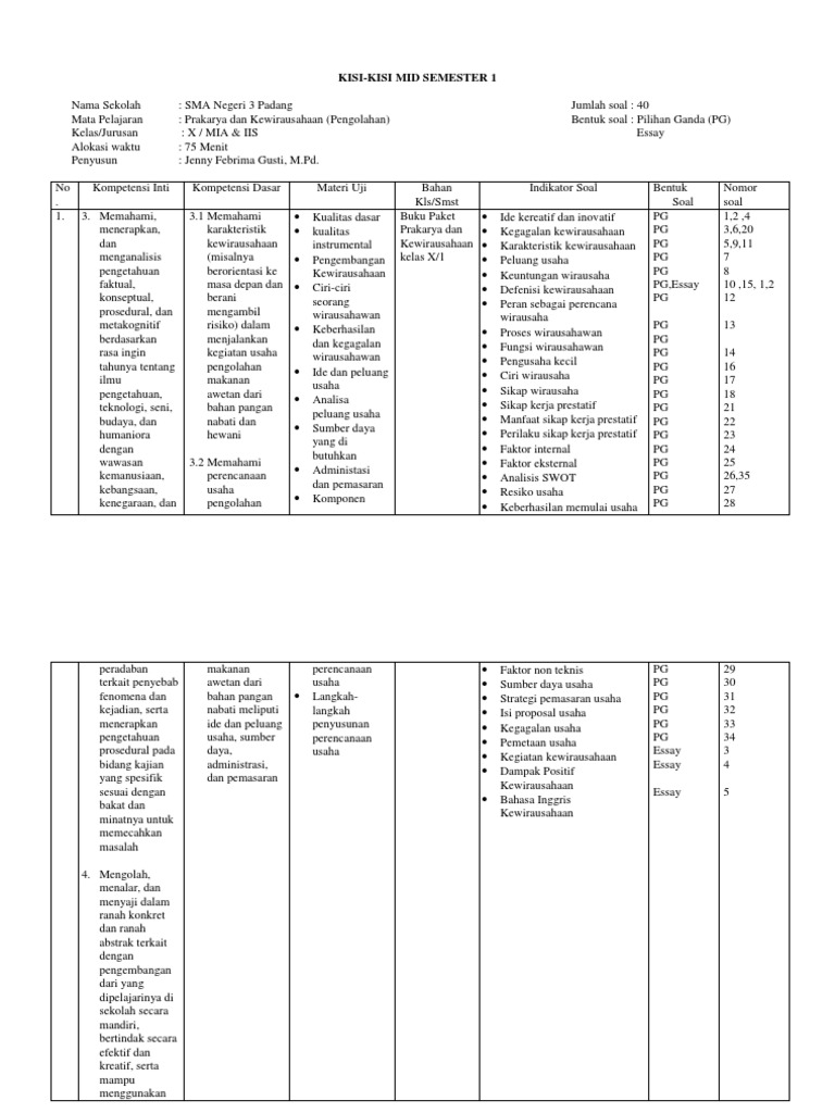 Kisi-kisi Soal Pas Pkwu x Dan Xi
