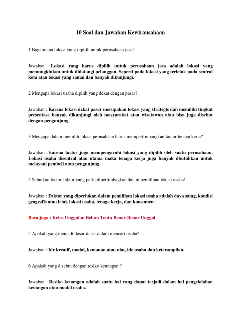 DOC) Soal kewirausahaan | umi irianti - Academia.edu