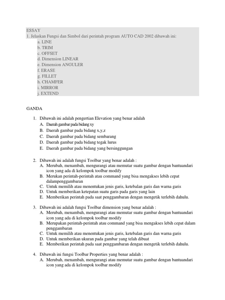 Soal Essay Autocad Dan Jawabannya
