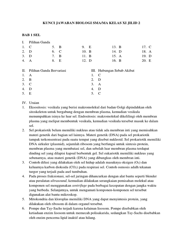Soal Dan Kunci Jawaban Biologi Sma Kelas Xi Smt i