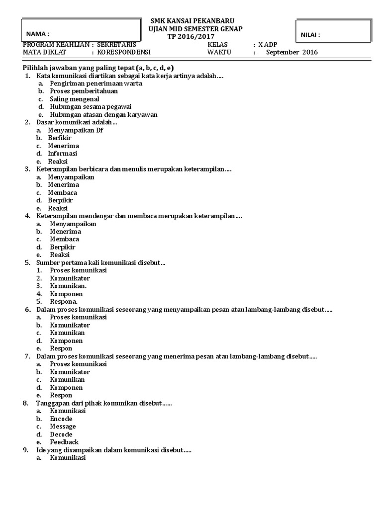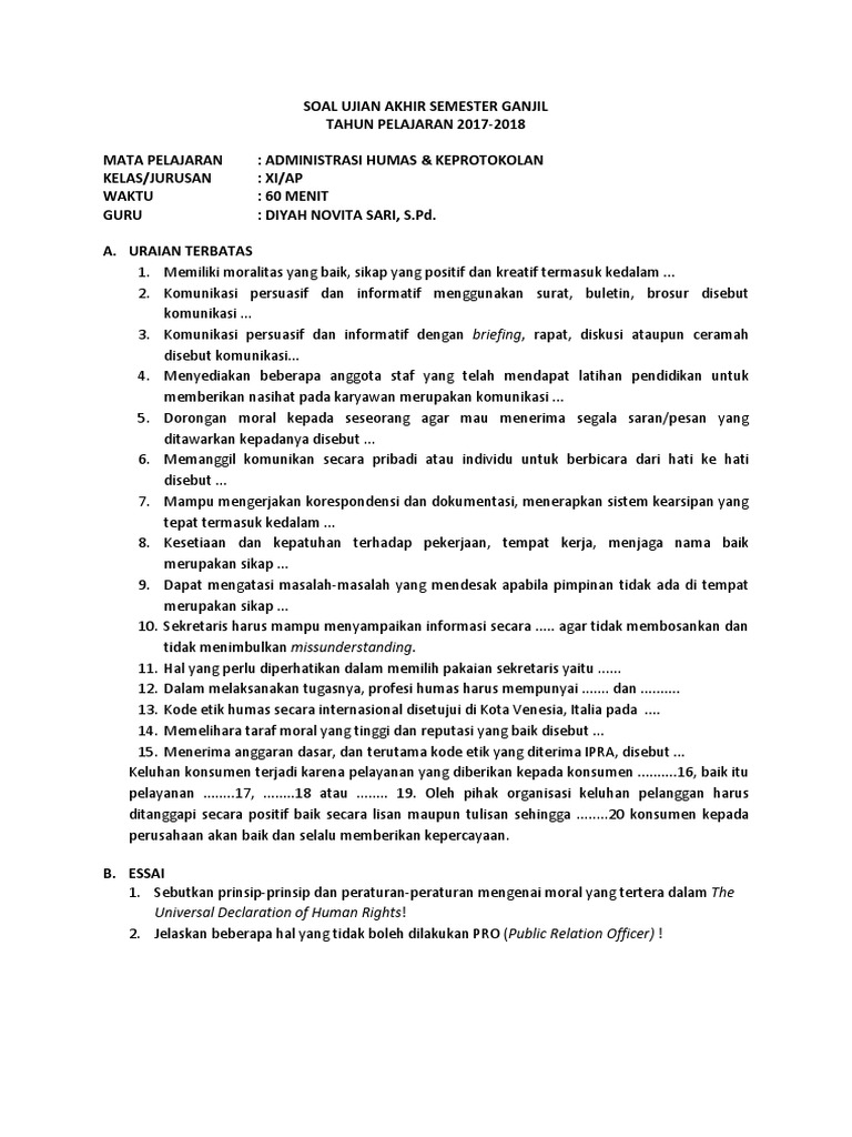 Soal Dan Jawaban Humas Dan Keprotokolan Kelas Xi Semester 1 - Guru …