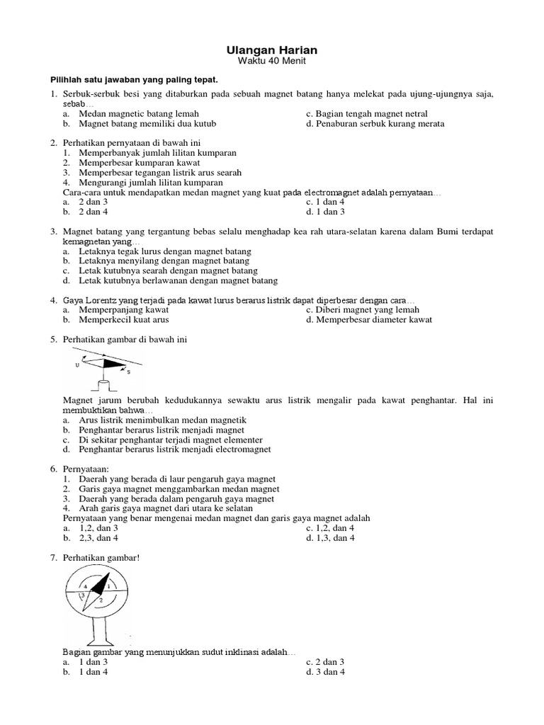 PDF) SOAL DAN PEMBAHASAN ULANGAN HARIAN FISIKA SMP KELAS 9 KEMAGNETAN DAN PEMANFAATANNYA DALAM TEKNOLOGI | I Gede Dana Santika - Academia.edu