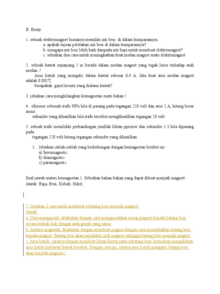 Soal Essay Kemagnetan Kelas 9