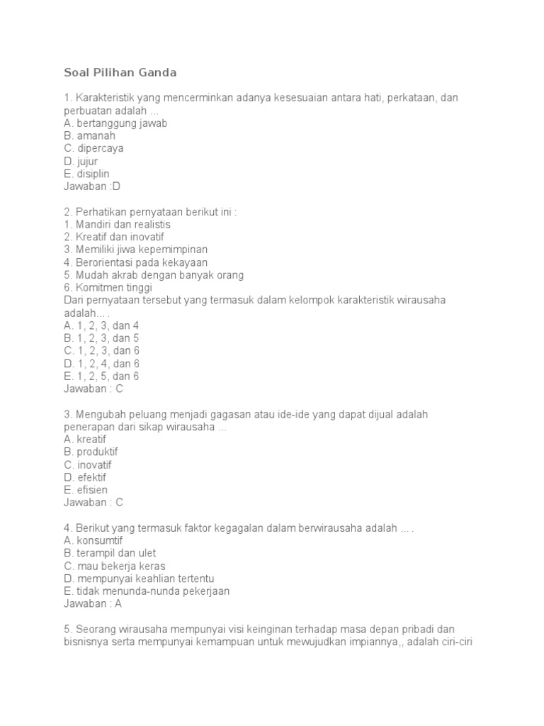 10 Soal Dan Jawaban Kewirausahaan