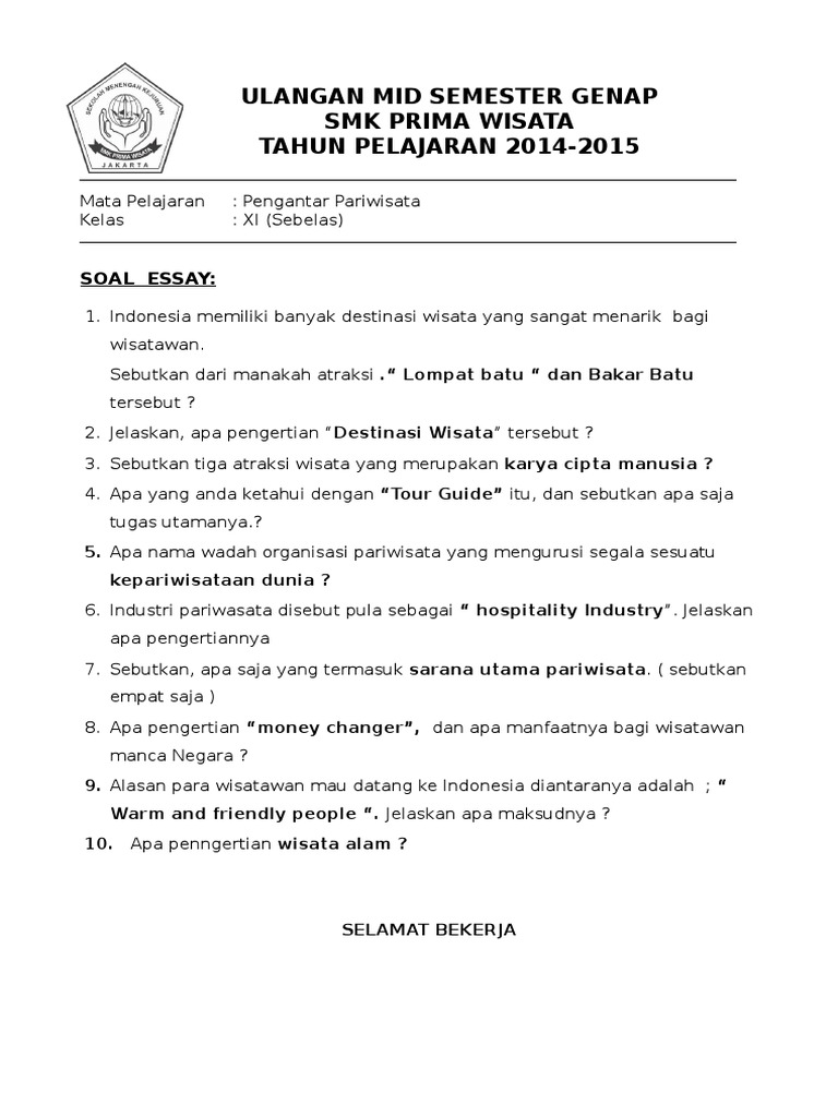 25 Soal-soal Kepariwisataan Smk Pariwisata Parbina Nusantara …