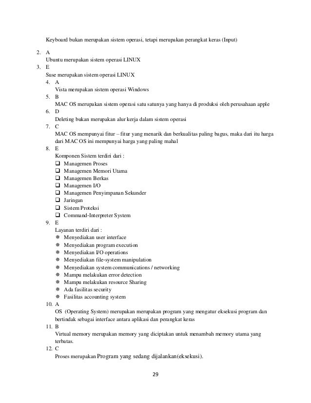 Soal dan Jawaban Latihan Mata Pelajaran Sistem Operasi