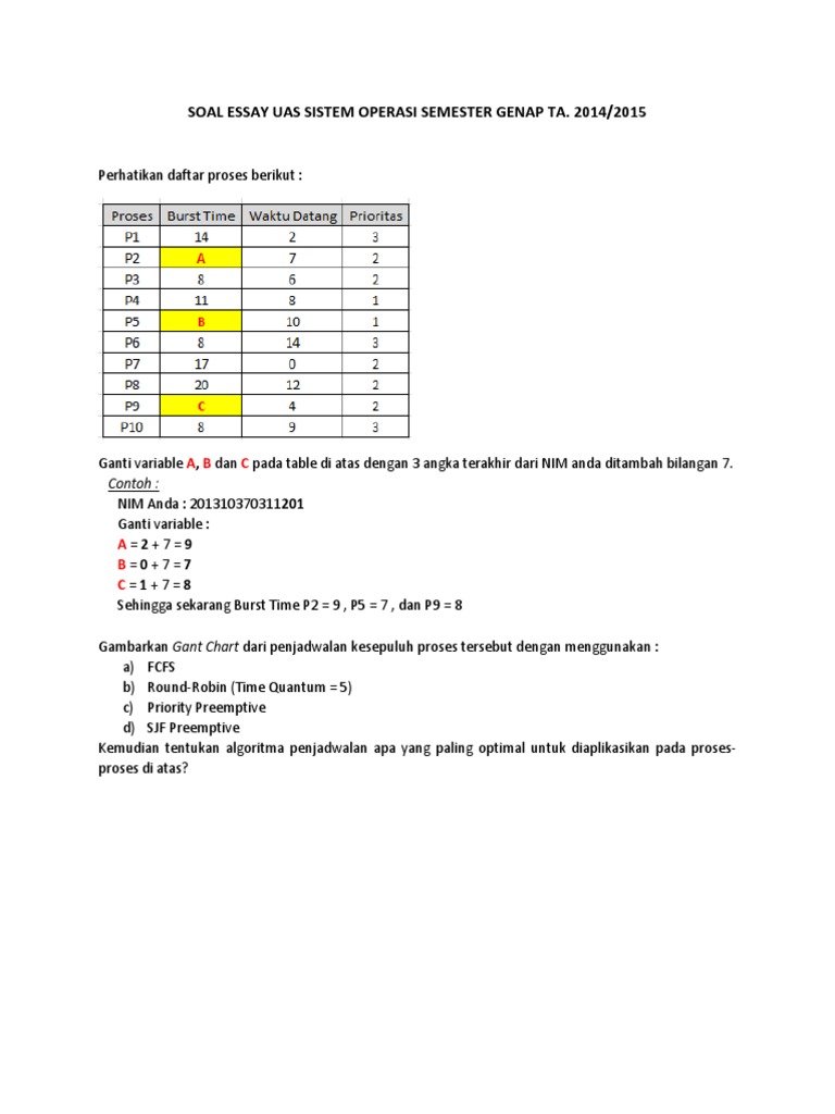 Soal Essay Uas Sistem Operasi Semester Genap Ta