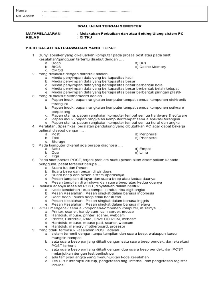 Soal Essay Melakukan Perbaikan Dan Setting Ulang Sistem Pc Games …