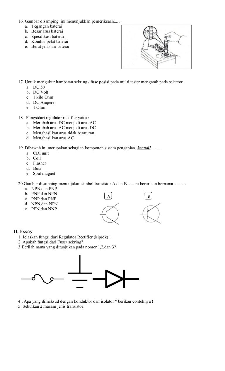 Soal UAS Pilihan Ganda Listrik Dasar Otomotif (LDO) | teknik …