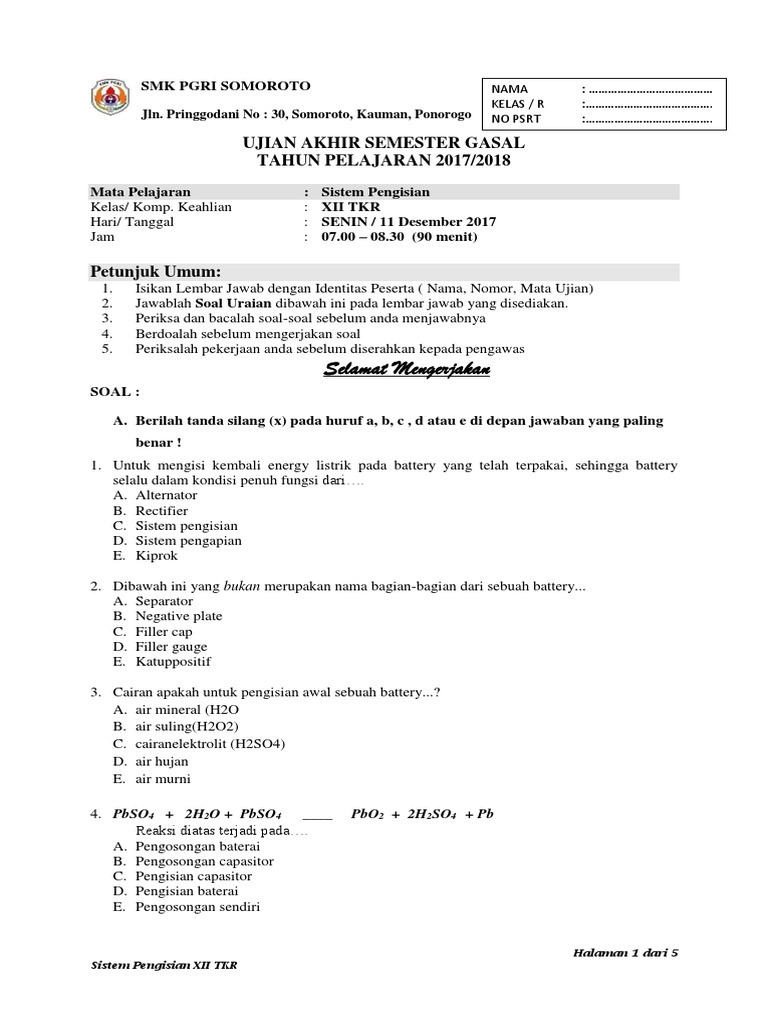 Contoh Soal Sistem Pengisian Dan Jawabannya - Guru Ilmu Sosial