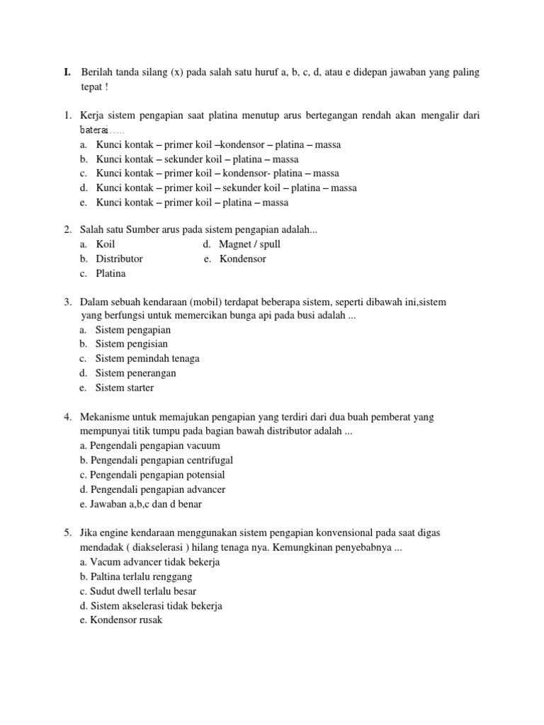 Contoh Soal Sistem Pengapian Dan Jawabannya - Contoh Soal Terbaru