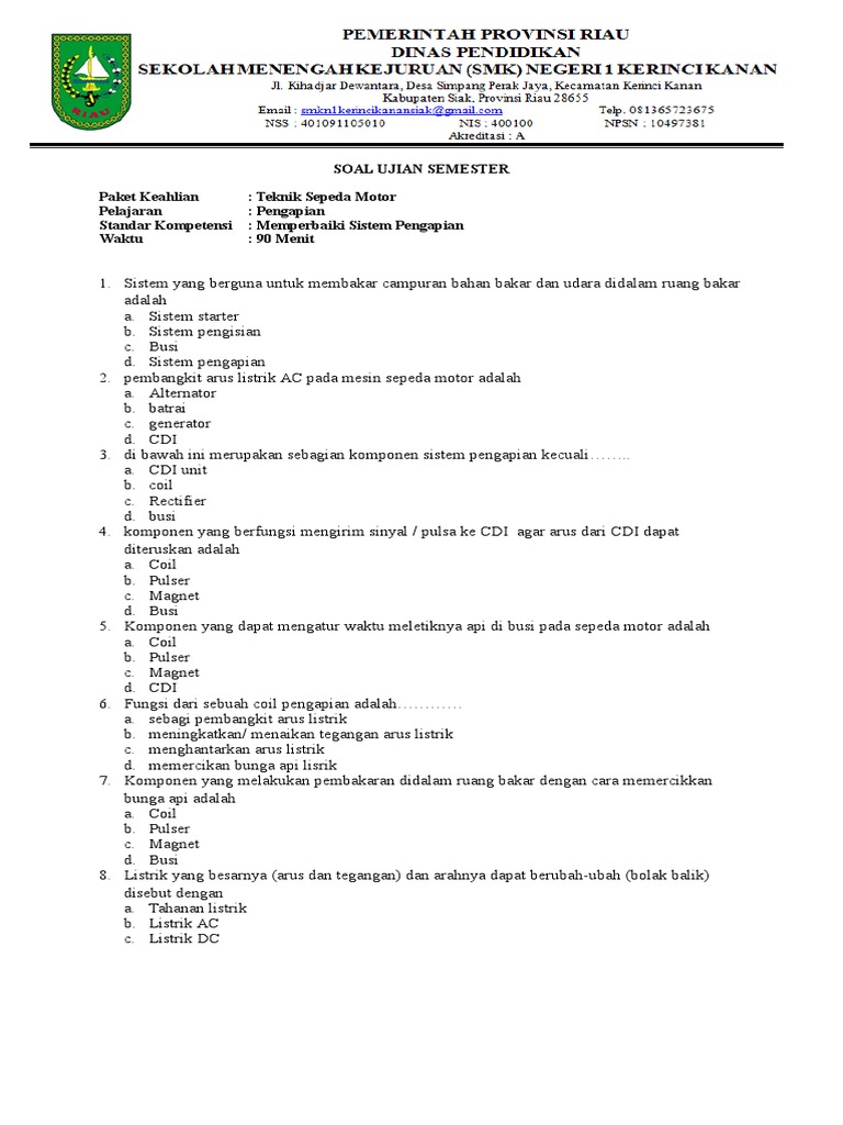 SOAL TEKNIK SEPEDAMOTOR