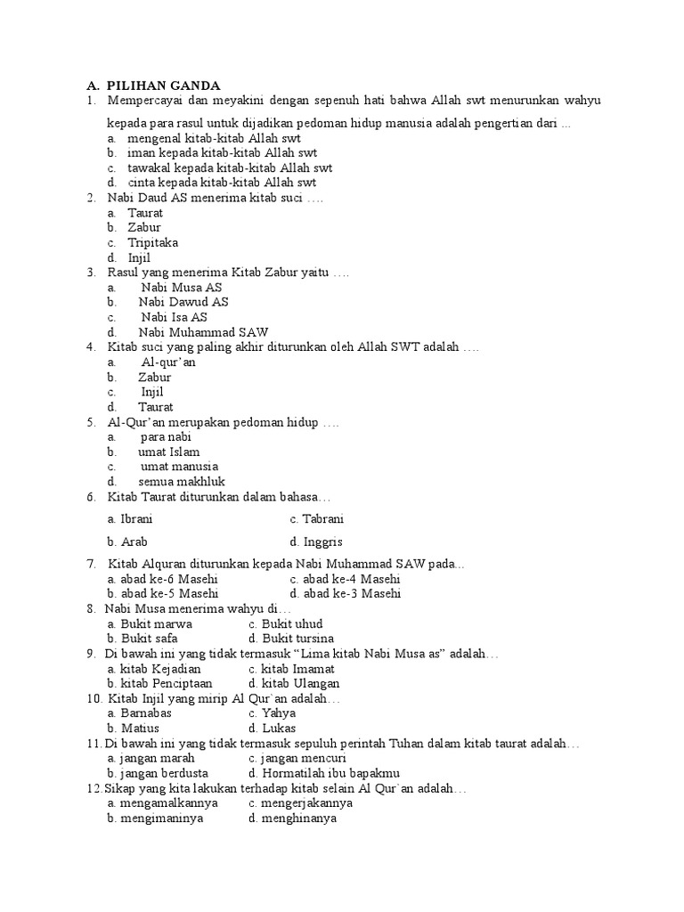 Agama Islam - Latihan Soal Bab Beriman Kepada Kitab Allah