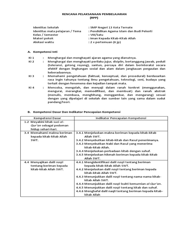DOC) Download RPP Akidah Akhlak Kelas 8 Kurikulum 2013 | mifjan 1984 - Academia.edu