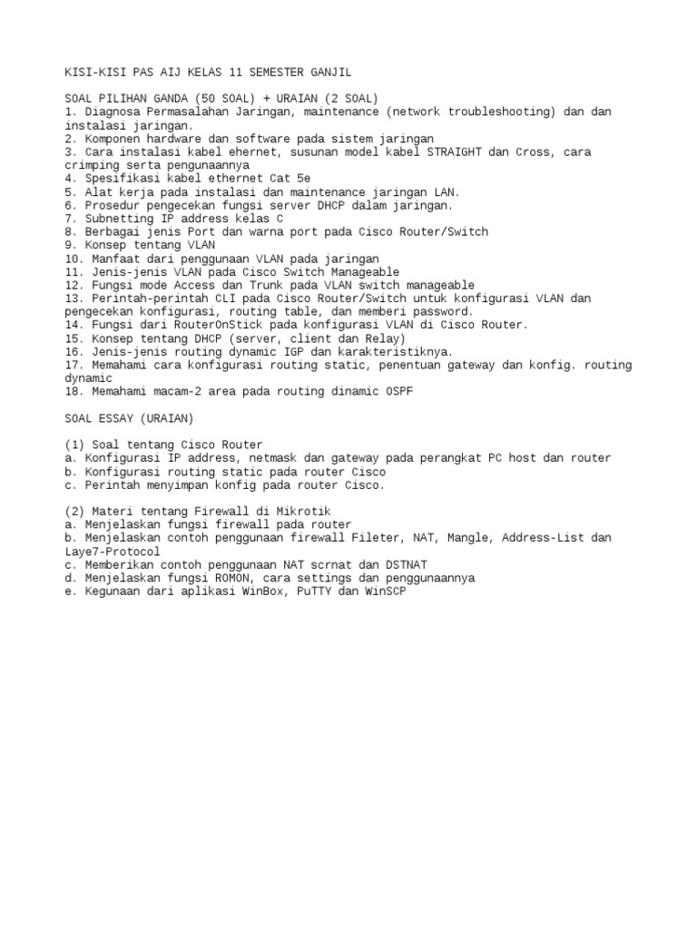 Kisi-Kisi Soal PAS AIJ Kelas 11 Semester Ganjil.txt