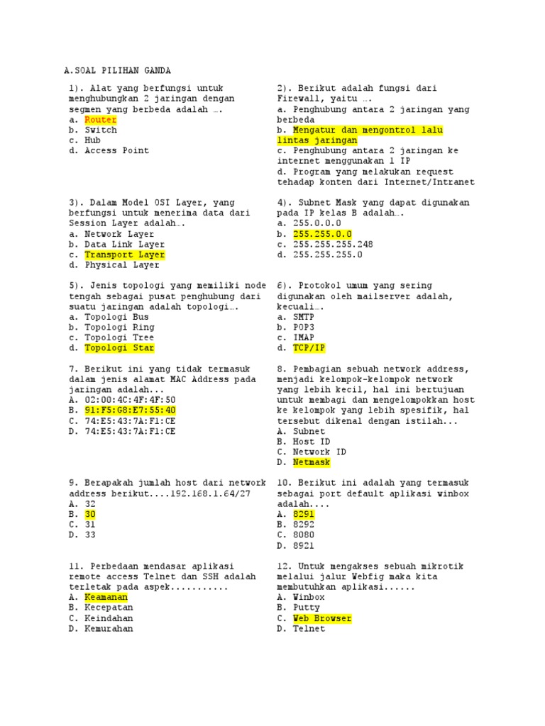 DOC) SOAL KEAMANAN JARINGAN KELAS XII TKJ | Lukman Khakim - Academia.edu